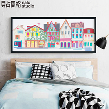 童话小镇 卧室床头装饰画儿童房挂画建筑壁画单幅温馨童趣样板房