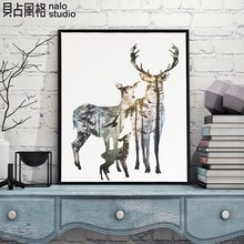 寻踪 现代简约北欧客厅装饰画沙发背景墙墙画麋鹿挂画壁画组合