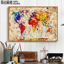世界地图复古怀旧美式餐厅装饰画玄关挂画巨幅大幅壁画书房无框画