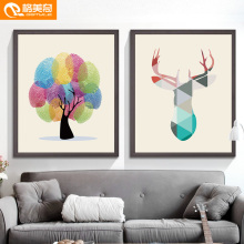 北欧装饰画 客厅欧式简约现代挂画 沙发背景墙壁画餐厅三联画麋鹿