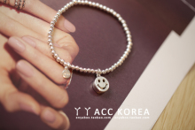 韩国进口东大门代购925纯银笑脸光亮面微笑脸圆珠珠手链