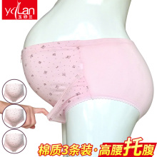 玉娇兰不可调节孕妇内裤3条装 高腰托腹怀孕内衣三角裤纯色裤头