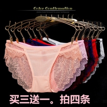 内裤女性感火辣诱惑低腰提臀无痕女士三角裤蕾丝面料透明女人内裤