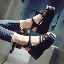 2017夏季新款坡跟凉鞋女韩版时尚金属链厚底松糕鞋鱼嘴高跟女鞋子