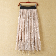 2017春夏季新款韩版百搭亮片流苏网纱半身裙松紧高腰中长款裙子女