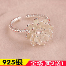 925纯银情侣戒指女 韩国荷花开口戒指气质甜美 花朵戒指 女款尾戒