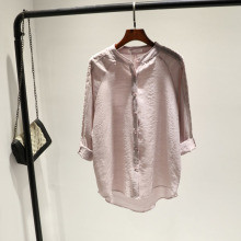 春季新款韩版甜美立领镂空刺绣花朵插肩袖棉麻衬衫质感休闲衬衣女