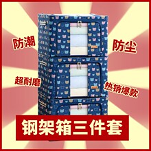 牛津布钢架收纳箱特大号66升3个装衣服的箱子储物箱无纺布整理箱