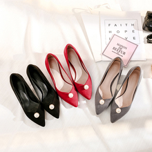 2016春秋新款女鞋韩版浅口尖头红色高跟鞋粗跟小码鞋