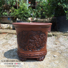 包邮碗型特大紫砂花盆挂绿浆纯手工雕刻复古高档绿植园艺盆栽个性