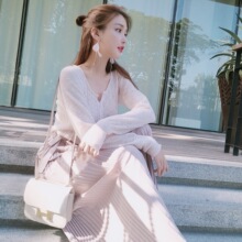fancy2017夏季新款纯色透视针织罩衫休闲百搭防晒衣卷边空调衫女
