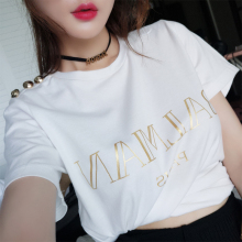fancy定制2017夏季女装新款白色字母印花T恤简约时尚纯棉短袖女夏