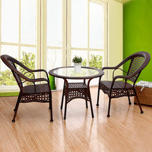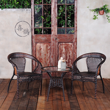 藤椅子茶几三件套 休闲咖啡厅阳台桌椅组合 藤编酒吧户外桌椅