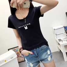 2017夏季女士韩版短袖T恤修身圆领纯棉上衣青春字母印花打底衫潮