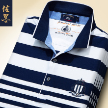 条纹Polo衫男 2017夏季中年商务修身翻领半袖男士保罗衫短袖T恤男