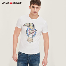 JackJones杰克琼斯动物贴片纯棉修身男装春季短袖T恤S|217101523