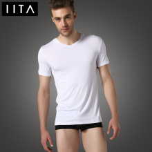 IITA进口超细莫代尔 T恤男士内衣短袖弹力修身背心打底内衣V领男