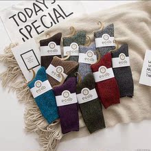 秋冬新款加厚保暖粗线粗针中统堆堆袜子 纯棉情侣袜