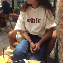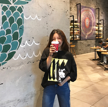 韩国2017春装新款经典百搭宽松 圆领套头磨毛棉Chic印花TEE