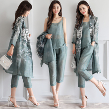 中国风三件套裤2017夏季新款女装雪纺九分阔腿裤套装女潮