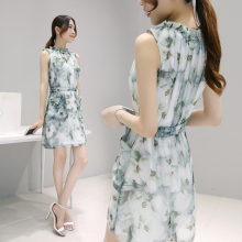 2017新款气质女装夏装韩版时尚显瘦连衣裙女雪纺无袖印花A字裙潮