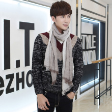 秋冬季男士围巾韩版潮百搭保暖拼色针织男围脖加厚条纹年轻人学生