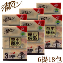 清风200抽18包原木纯品纸巾抽纸餐巾纸软包面巾家庭装纸整箱包邮