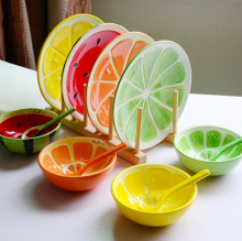 甜美日式手绘陶瓷夏日清新水果碗勺盘三件套 米饭碗 甜品冰淇淋碗