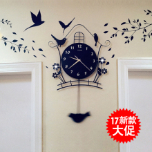 复古家用创意个性时钟表挂钟客厅田园摇摆小鸟时尚装饰静音石英钟