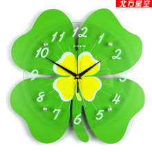 可爱卡通卧室装饰静音挂钟时尚创意挂表四叶草客厅工艺时钟现代