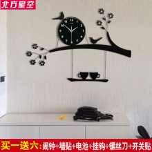 现代鸟语花香田园静音挂钟 时尚个性创意挂表卧室卡通客厅装饰表