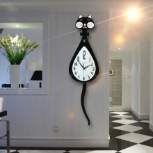 摇尾猫咪钟表挂钟客厅现代简约创意个性静音摇摆家用卧室挂表时钟