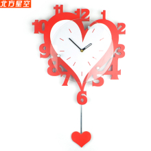 心形静音摇摆挂钟 时尚创意客厅钟表个性卧室婚庆现代装饰时钟