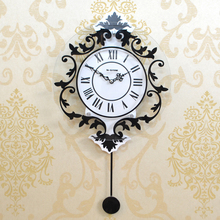 现代装饰欧式罗马静音摇摆挂钟时尚创意钟表客厅卧室挂表个性时钟