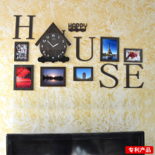 现代装饰时尚创意电视照片墙静音挂钟 卧室客厅个性卡通house钟表