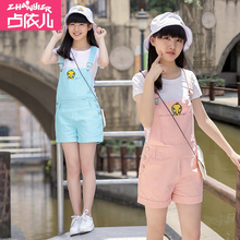2017夏装新款少女t恤背带连体裤短裤学生宽松休闲吊带裤两件套潮