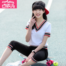 高中初中学生休闲运动套装女夏短袖t恤哈伦七分裤少女夏季两件套