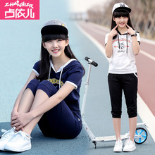 运动套装女夏字母短袖t恤学生七分裤休闲裤少女夏季运动服两件套