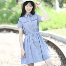 少女学院风夏装连衣裙新款韩版修身条纹青少年夏装初中学生连衣裙