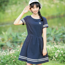 少女连衣裙女中长款新款韩版学院风初高中学生短袖连衣裙子女夏装