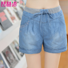 青少年少女夏装新款热裤宽松紧高腰韩版休闲初高中学生牛仔短裤女