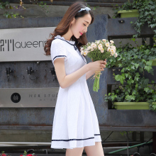 少女连衣裙夏装新款韩版学院风短袖甜美初中学生连衣裙子女中长款