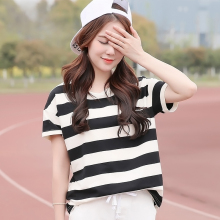 少女t恤夏装新款女装韩版黑白条纹短袖圆领初中学生t恤夏季女上衣