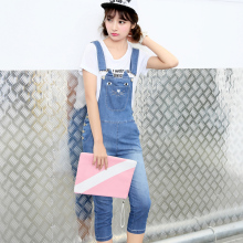 少女背带裤夏装新款韩版修身青少年女装初中学生牛仔裤女七分裤潮