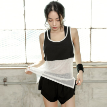 瑜伽服网纱健身服三件套健身房运动套装女跑步速干宽松罩衫夏季韩