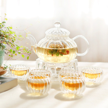 陶瓷花茶茶具套装 水果茶壶茶杯套装 耐热玻璃加热底座下午茶壶