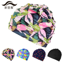 包邮 时尚印花游泳帽 男女通用舒适成人长发护耳加大不勒头布泳帽