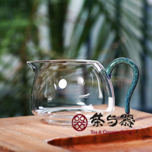 【茶与器】台湾自慢堂草堂玻璃公杯 大自慢公道杯 绞蓝色茶海正品