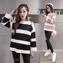 孕妇毛衣秋冬装韩版时尚条纹孕妇装春秋宽松孕妇上衣宽松孕妇针织