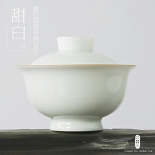 匠器家|景德镇纯手工陶瓷盖碗茶杯 白瓷三才盖碗 知白大号盖碗